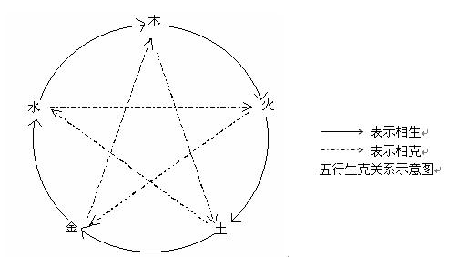 五行学说是以五行生克制化规律来探索事物。所谓五行生克是指水、火、木、金、土五类事物之间,一类事物对另一类事物的辅助,推进作用,称为“相生”,一类事物对另一类事物的抑制束缚作用称为“相克”。