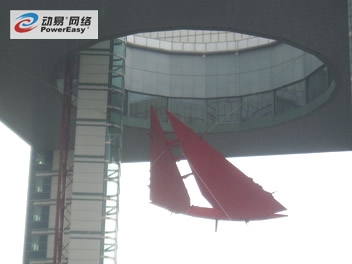今年 7 月份受吉林市某企业家邀请首次去吉林市,一个城市的名字与所管辖它的省份名字一致的在全国好象没有第二家了。有一天我乘车在市内吉林大街上行驶,见路旁的世纪广场很别致,叫将车停好,下车走进广场。此广场较大,呈长方形,地面全铺的是大理石板。在北头修建一个硕大的建筑物,约四、五十米高,四角四根大方柱,外用玻璃镶嵌,内装观光电梯,据介绍到顶部可观览吉林全市风光,建筑物的内里高处悬挂着三片大红装饰物,说是什么无底船。